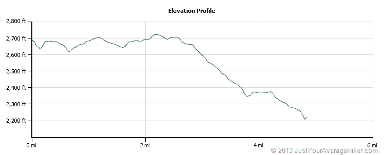 I loved this trip – medium difficulty, because of snowshoeing and carrying 50lb packs. Otherwise, for a day-hike during the non-winter months, I would give this an easy rating. Below is all of the information I could furnish on the trail – I hope this is useful!
