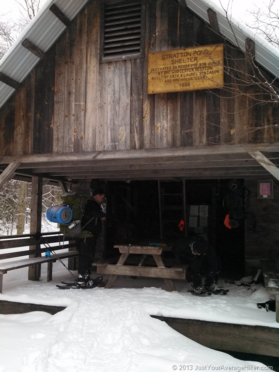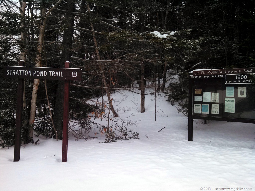 From the parking lot, down Stratton-Arlington Road to the trailhead to the shelter: