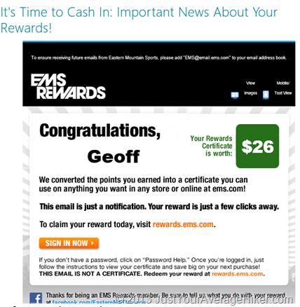 If you shop at EMS, you should join their rewards program. The best benefit of all, is that you earn points with every dollar you spend, and similar to the REI dividend you get every year, EMS also does this with their program. It makes perfect sense that if you can get some cash towards more gear buy buying the gear you were going to get anyways, why wouldn’t you?